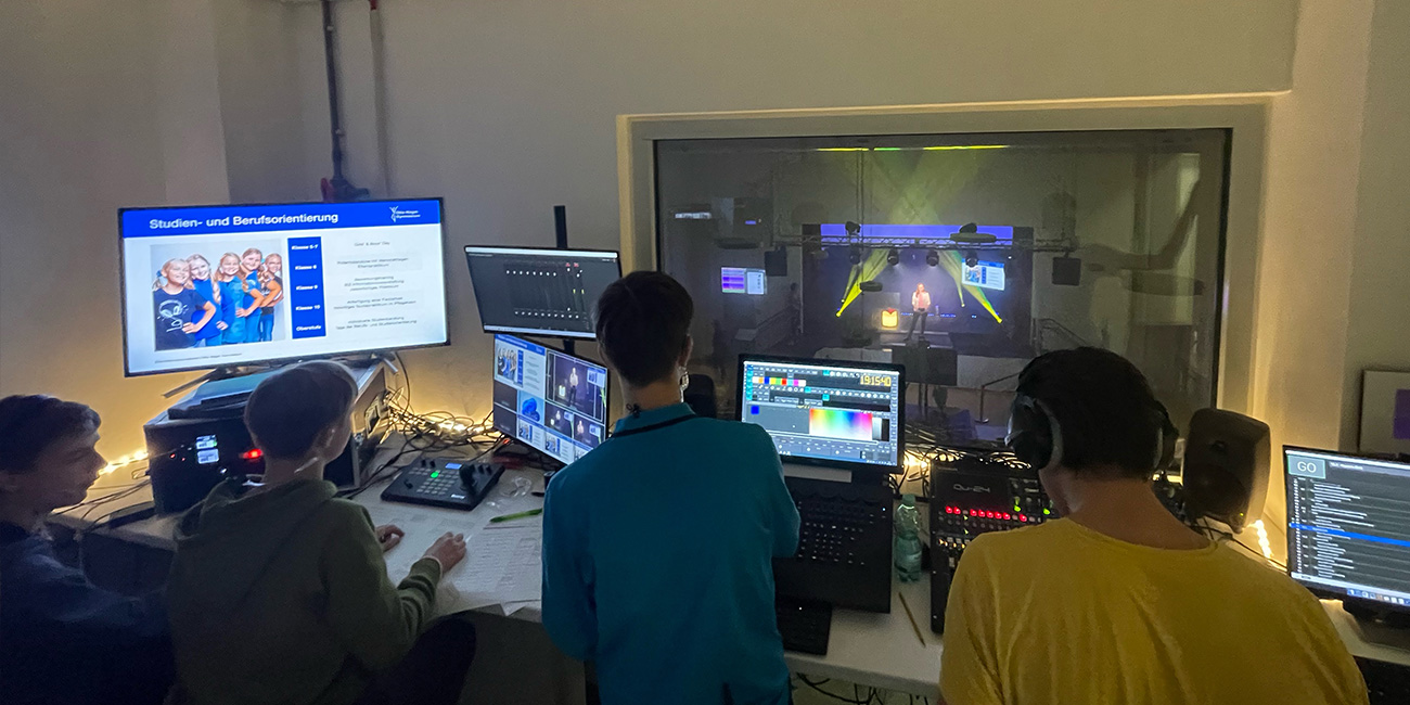 Schülerinnen und Schüler des BEGA-Kurses streamen live aus der Schule